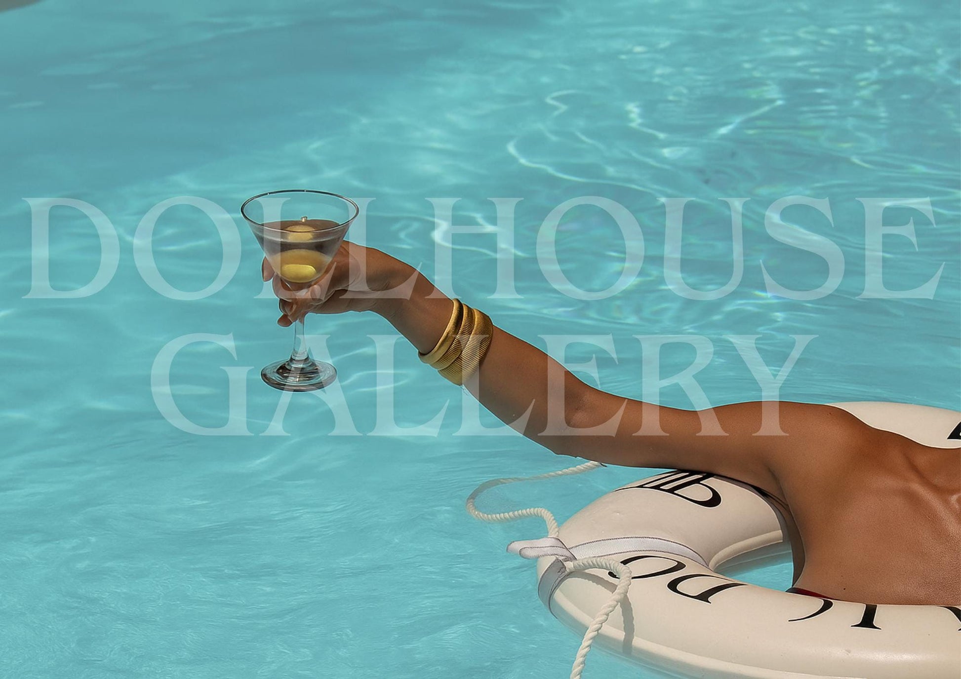 Refined, relaxed, and utterly glamorous — this art print captures the timeless allure of leisure. A golden arm rests over a pool float, martini in hand, as turquoise water sparkles in the sun. Inspired by Slim Aarons’ golden age of poolside living, this piece reimagines luxury with a modern, minimalist sensibility.