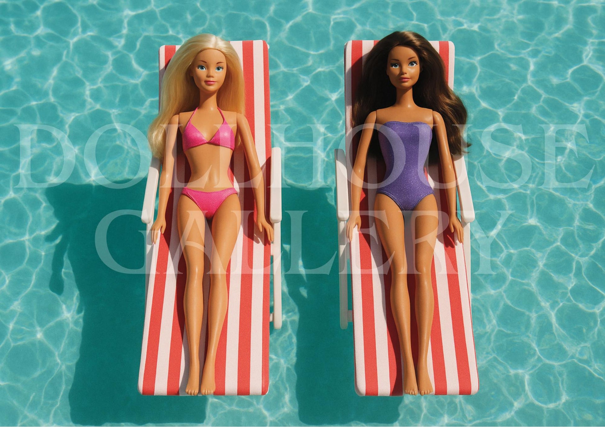 The turquoise water, clean composition, and playful colour palette evoke the elegance of mid-century leisure photography while adding a fresh, contemporary twist. A perfect statement piece for bright, modern interiors that celebrate style and fun.