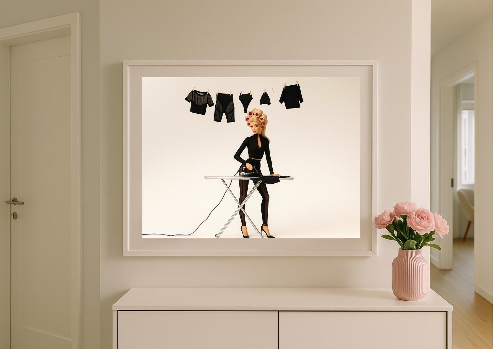 Add a touch of fashion and fun to your walls with this fashion doll wall art — a bold, stylish print that transforms everyday life into high art. Featuring a chic figure in black with retro hair rollers, this modern glam decor print blends sophistication, wit, and feminine empowerment.